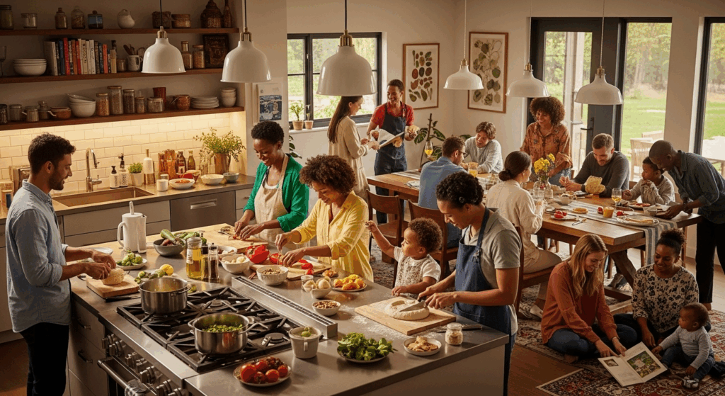 Uma comunidade diversa é uma comunidade mais forte. A troca de habilidades (um jovem ajuda com tecnologia, um idoso ensina a consertar algo), o compartilhamento de recursos e a diversidade de perspectivas tornam o grupo mais resiliente a desafios. É um modelo de vida socialmente rico, economicamente inteligente e ambientalmente mais sustentável.